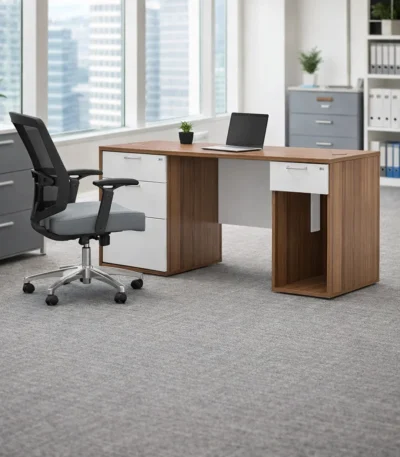 - میز کارمندی استاندارد: این نوع میز معمولاً شامل فضای ذخیرهسازی کافی و طراحی سادهای است که برای کارهای روزمره مناسب است. میزهای کارمندی استاندارد میتوانند در ابعاد و اشکال مختلف وجود داشته باشند و به راحتی در هر فضایی جا بگیرند.