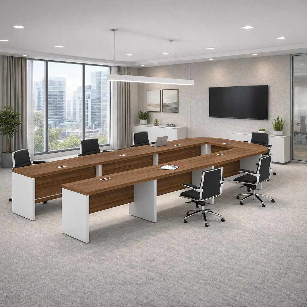 • میز کنفرانس ساجیران: طراحی شده برای تعامل بهتر و چیدمانی اصولی در اتاق‌های جلسات و مذاکره.