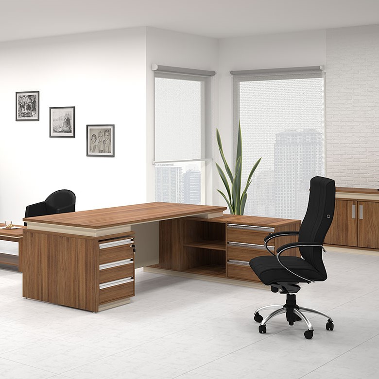 • میز مدیریتی ساجیران: نمادی از قدرت و ظرافت که با طراحی خاص خود، ابهت ویژه‌ای به اتاق مدیریت می‌بخشد.