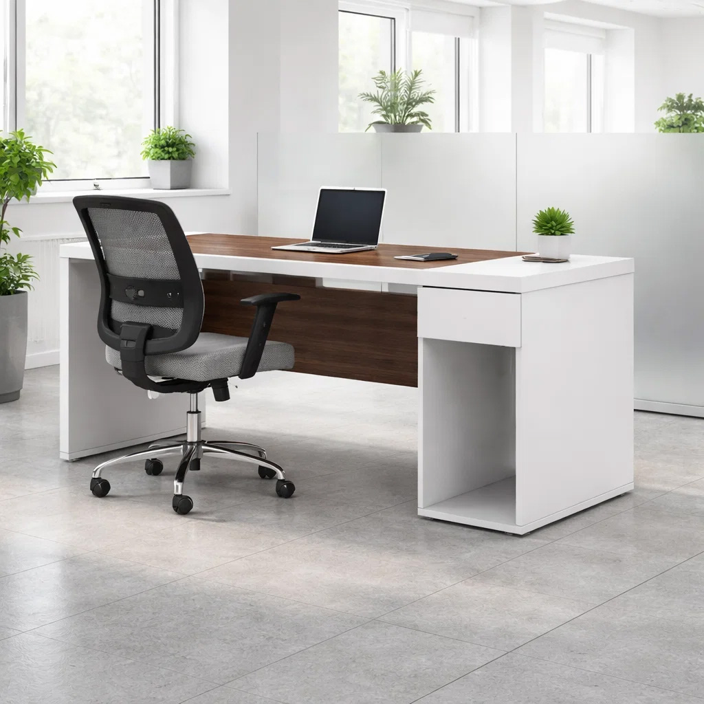 یکی از ویژگی‌های بارز این میز، القای حس پویایی و نظم در فضای کاری است؛ احساسی که باعث افزایش انگیزه در کارمندان و کاهش خستگی ذهنی و جسمی در طول روز می‌شود. این میز به‌خوبی با سایر تجهیزات و پارتیشن‌های اداری هماهنگ می‌شود و امکان چیدمان متنوع در فضاهای کاری باز و بسته را فراهم می‌آورد.